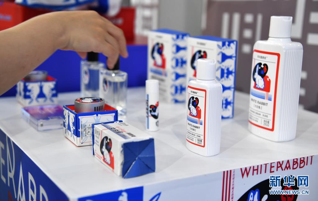 这是5月9日在首届消博会上拍摄的大白兔奶糖周边产品。
