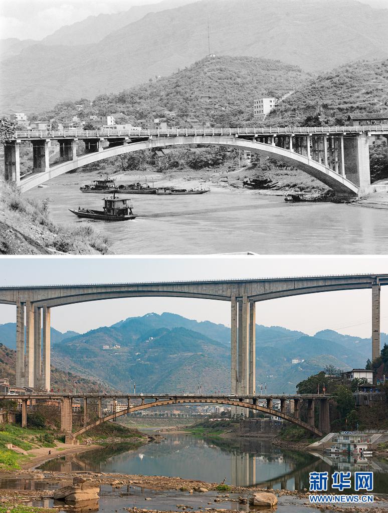 这是一张拼版照片,上图为:红军四渡赤水之一的土城渡口(资料照片);下图为:2021年2月23日拍摄的土城渡口新貌(新华社记者刘续摄)。新华社发