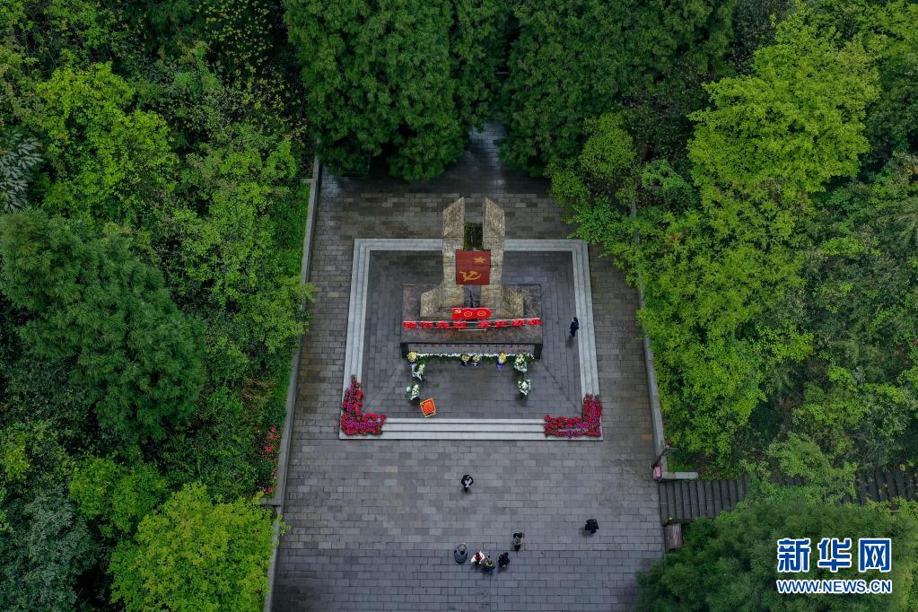 参观者在娄山关红军战斗纪念碑前瞻仰(2021年4月20日摄)。 新华社记者 欧东衢 摄