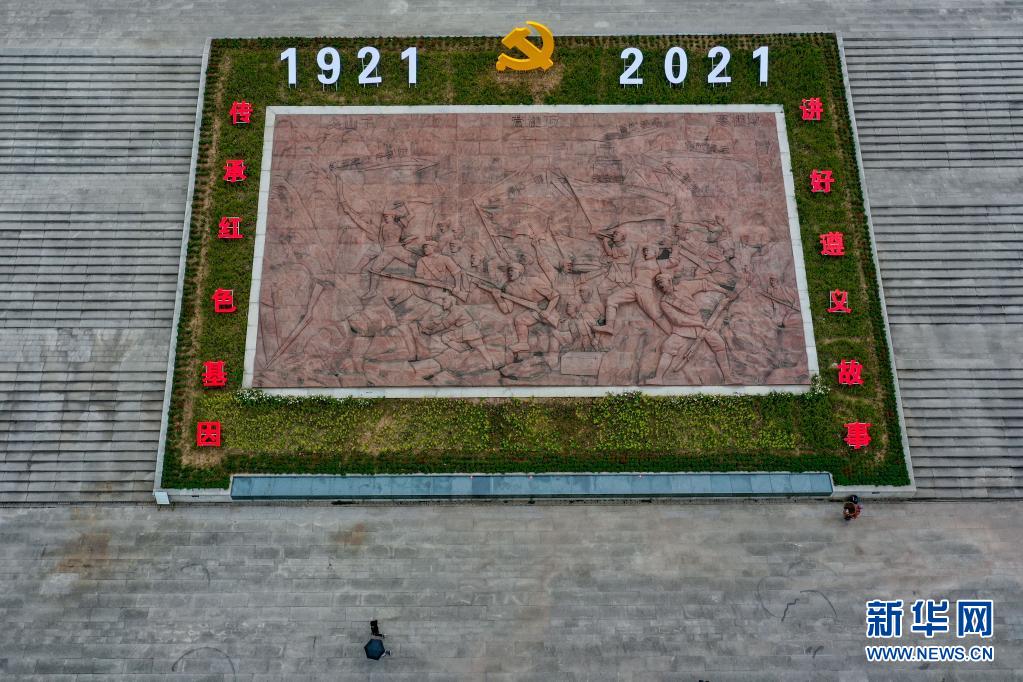 参观者在位于贵州省遵义市习水县土城镇的“青杠坡战斗遗址”内参观(2021年4月22日摄,无人机照片)。新华社记者 欧东衢 摄