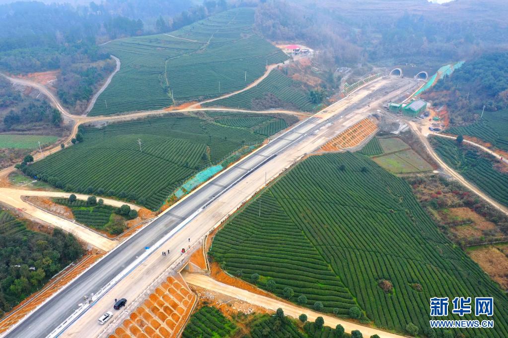 这是穿过茶园的贵州遵义至余庆高速公路(2020年12月24日摄,无人机照片)。新华社记者 刘续 摄