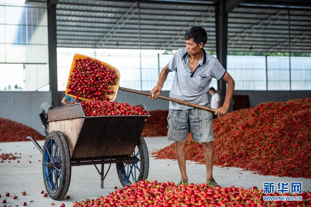 工人在贵州遵义市新蒲新区辣椒城转运辣椒(2020年8月18日摄)。新华社记者 陶亮 摄