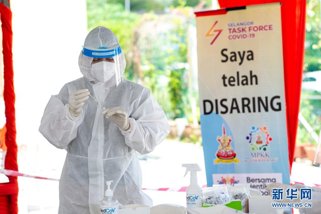 5月10日,在马来西亚吉隆坡附近,医务人员进行新冠病毒检测取样。