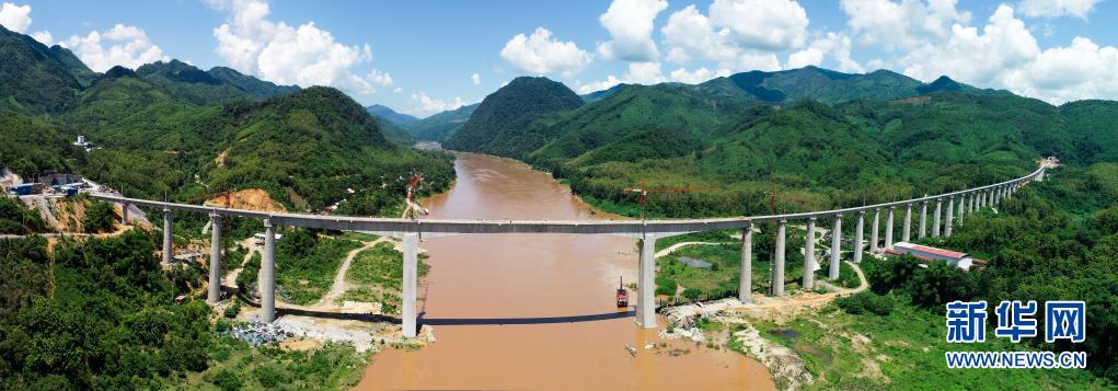 这是在老挝拍摄的中老铁路班纳汉湄公河特大桥(2020年7月24日摄)。中老铁路是中国“一带一路”倡议与老挝“变陆锁国为陆联国”战略对接项目。