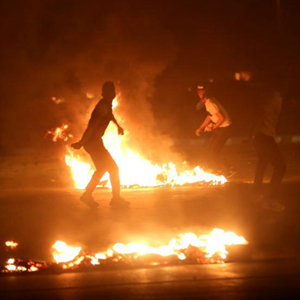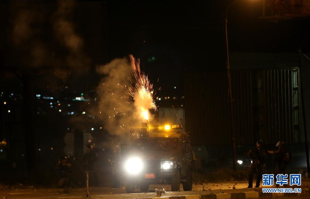 5月10日,以色列军车在约旦河西岸城市纳布卢斯附近向巴勒斯坦人发射催泪瓦斯。