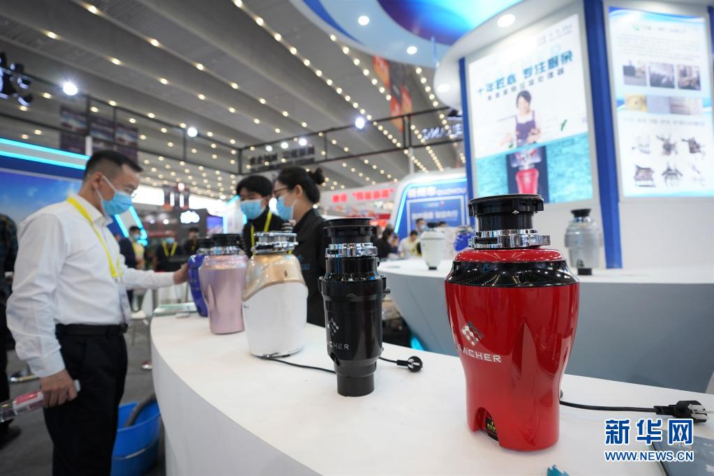 5月11日,观众在参观展出的厨余垃圾处理设备。
