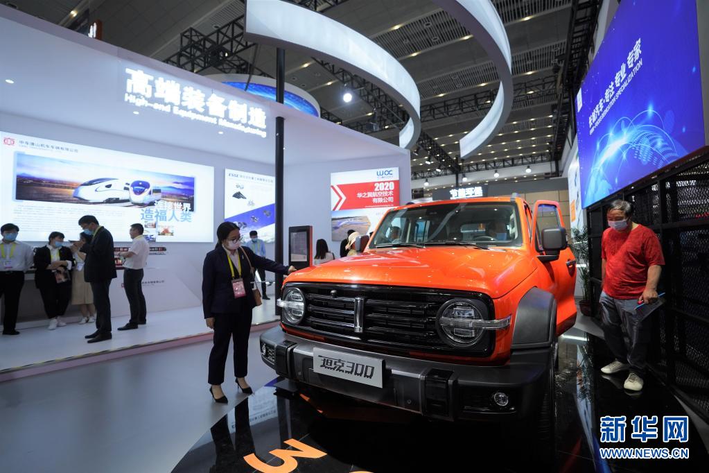 5月11日,观众在博览会上参观一款国产品牌汽车。
