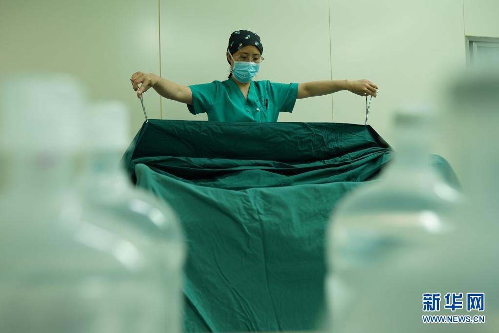 5月11日,河北省邢台市巨鹿县医院手术室护士在做术前准备。