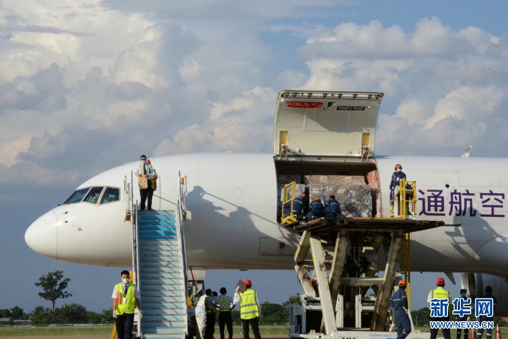 中国政府紧急援助老挝的抗击新冠肺炎物资10日由包机运抵万象瓦岱国际机场。今年4月中旬以来,老挝出现本土疫情并急剧扩散,防控形势趋紧。10日交接的中方援助物资主要包括呼吸机、全自动核酸提取仪、口罩、移动式病床、自动高压灭菌器、核酸提取或纯化试剂以及核酸检测试剂盒等。