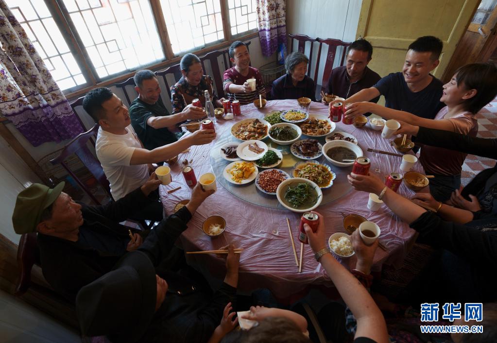 5月4日,林兴聪、李芸香一家团聚在一起吃午饭。 新华社记者 江宏景 摄