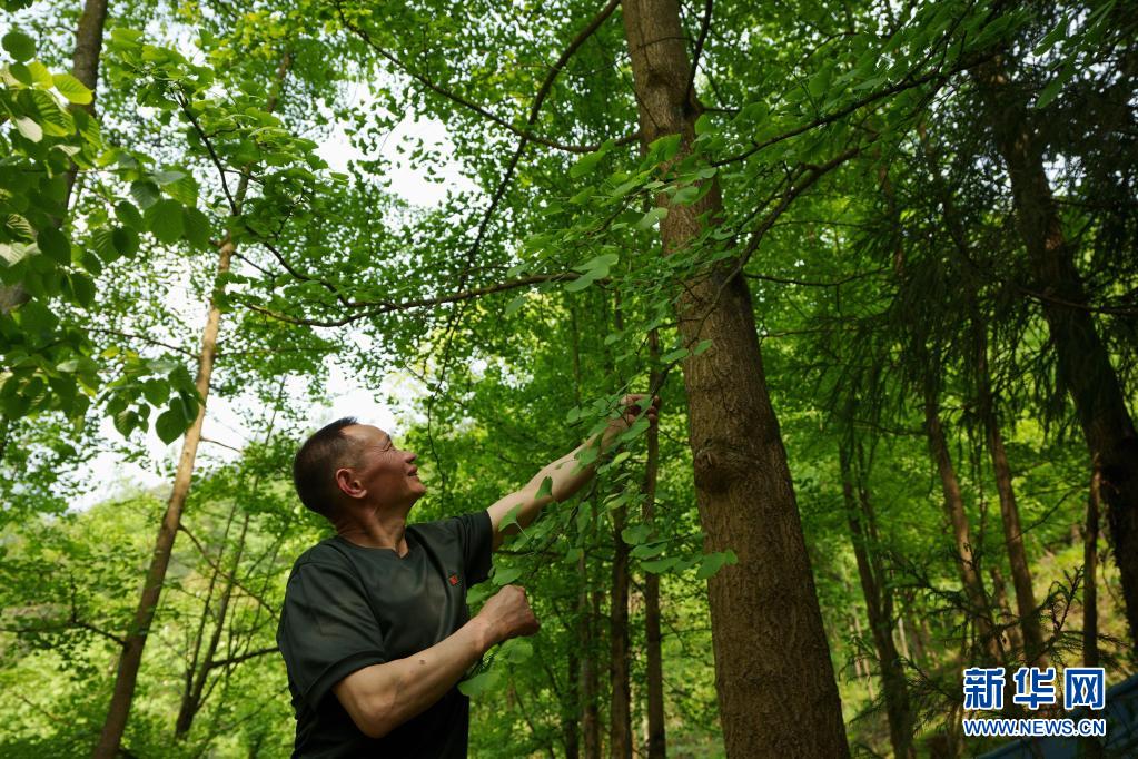 5月4日,林兴聪在自家林地里看着茁壮成长的银杏树。 新华社记者 江宏景 摄