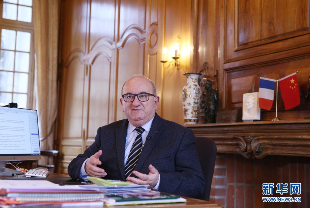 3月22日,法国蒙达尔纪市市长伯努瓦·迪容接受新华社记者专访。新华社记者 高静 摄