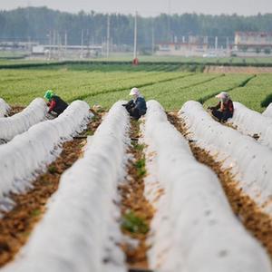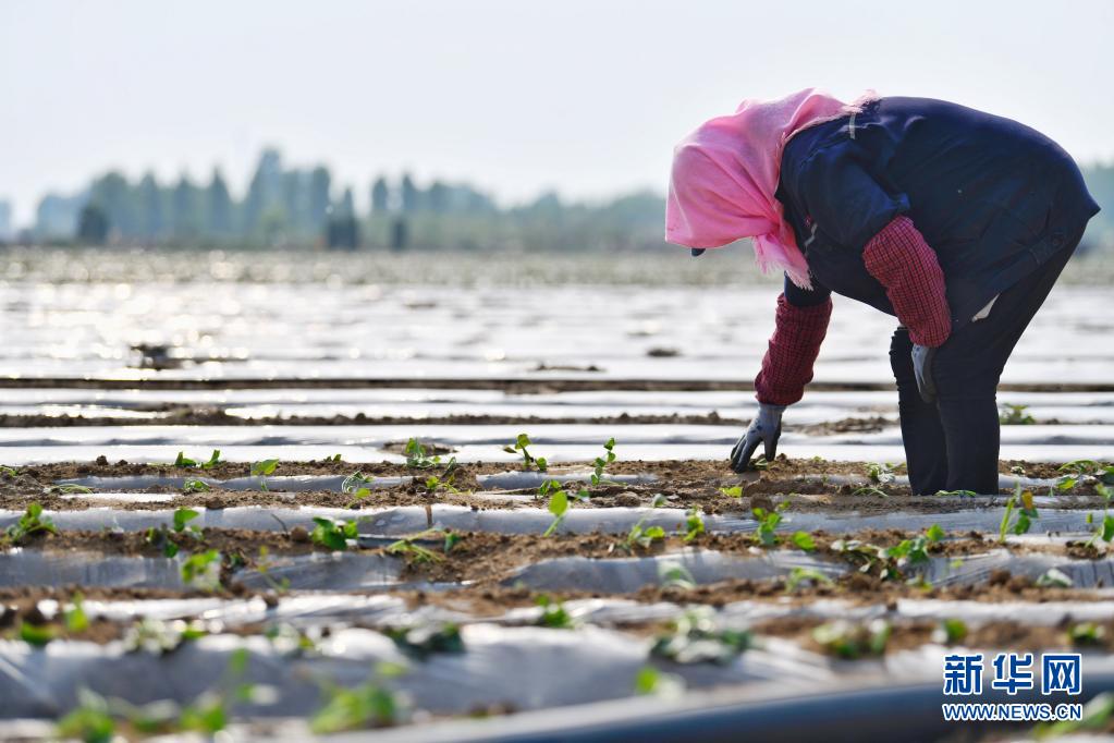 初夏时节,河北省唐山市丰南区农民抢抓农时,利用晴好天气开展红薯栽苗、浇水、覆膜等工作。近年来,丰南区通过“基地+合作社+农户”的模式大力推广红薯种植,全区红薯种植面积超5000亩,逐渐形成育苗、种植、加工、销售一体化的产业链,有效带动农民增收。