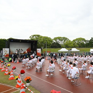 5月11日至12日,东京奥运火炬接力相关活动在日本福冈县举行。由于受新冠肺炎疫情影响,福冈县境内的火炬传递取消了火炬手路上跑动传递,改为举行点火仪式,由火炬手轮流在仪式的舞台上交接圣火,不允许普通观众入场观看。