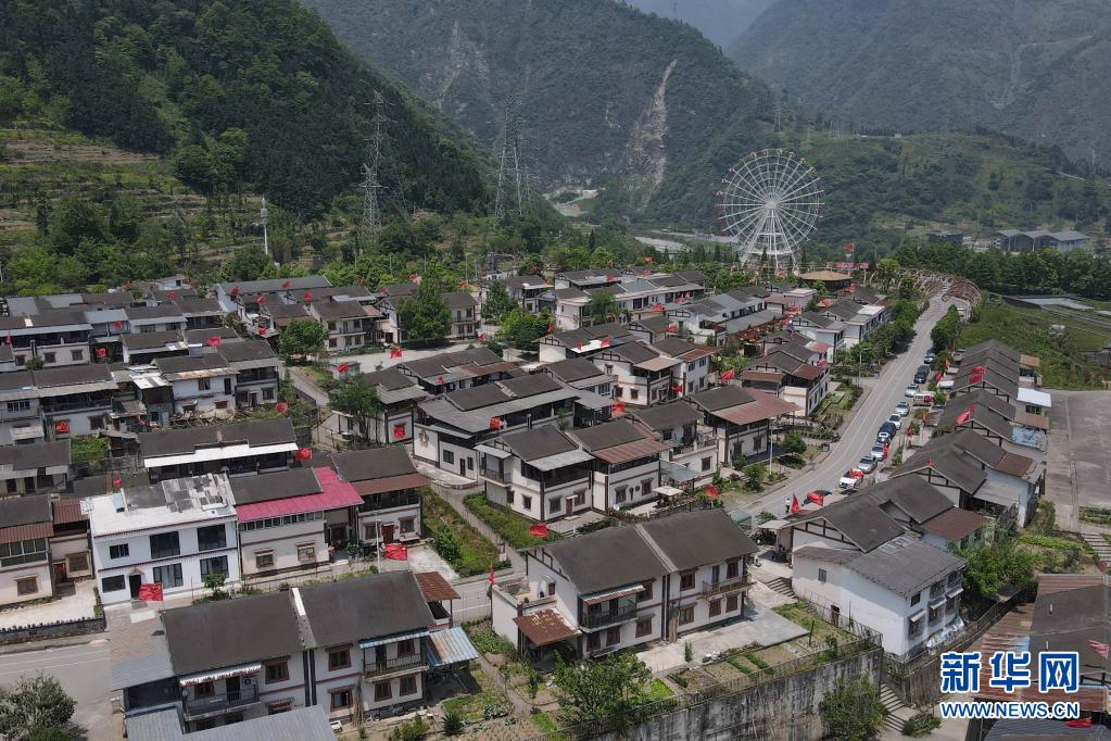 这是5月8日拍摄的四川省汶川县映秀镇渔子溪村一角(无人机照片)。新华社发
