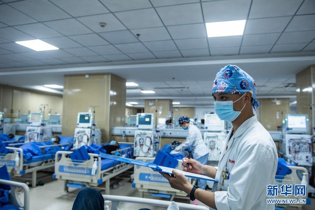 黄秀峰在病房内登记患者体征数据(3月25日摄)。新华社记者 陶亮 摄