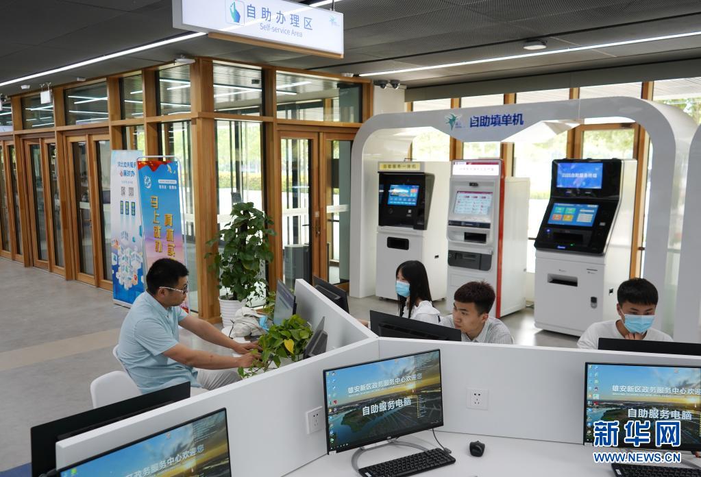 5月12日,在河北雄安新区政务服务中心自助办理区,居民使用自助服务电脑办理业务。