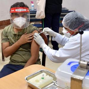 5月12日,一名男子在印度德里接种新冠疫苗。