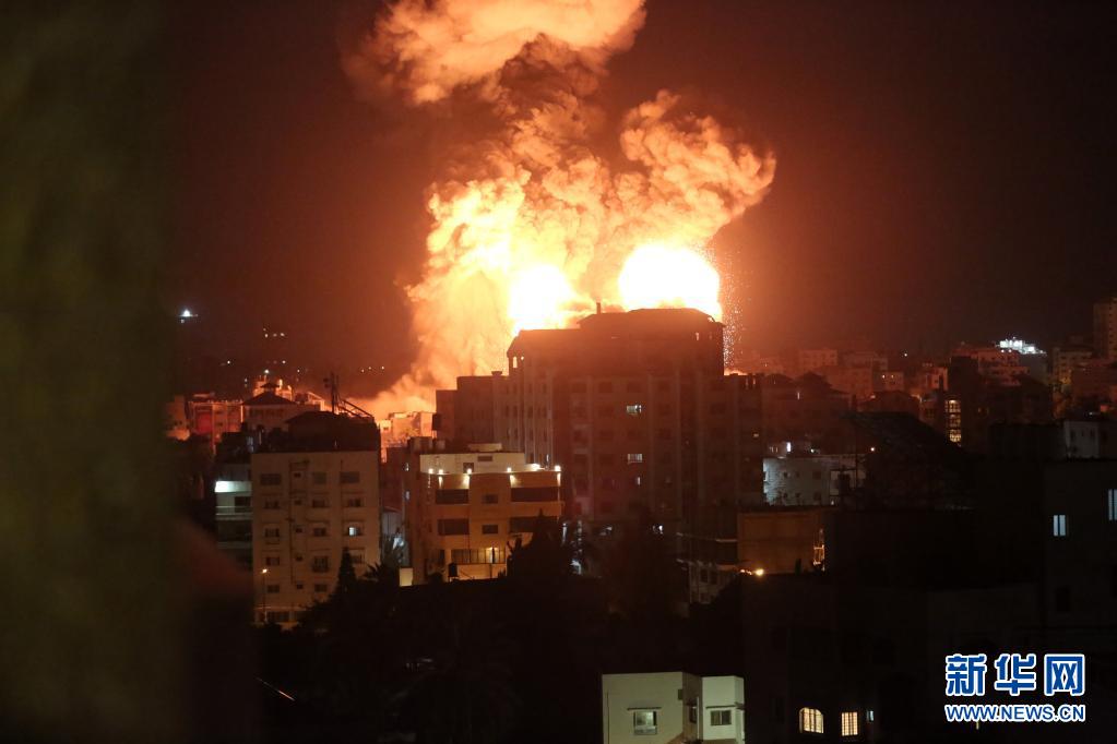 5月12日午夜前后,加沙城一处建筑在以色列空袭中发生爆炸。