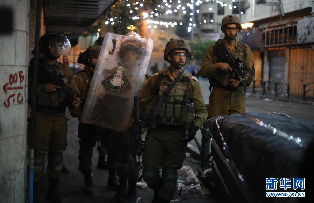 5月12日,以色列边防警察在约旦河西岸城市希伯伦街头与巴勒斯坦示威者对峙。