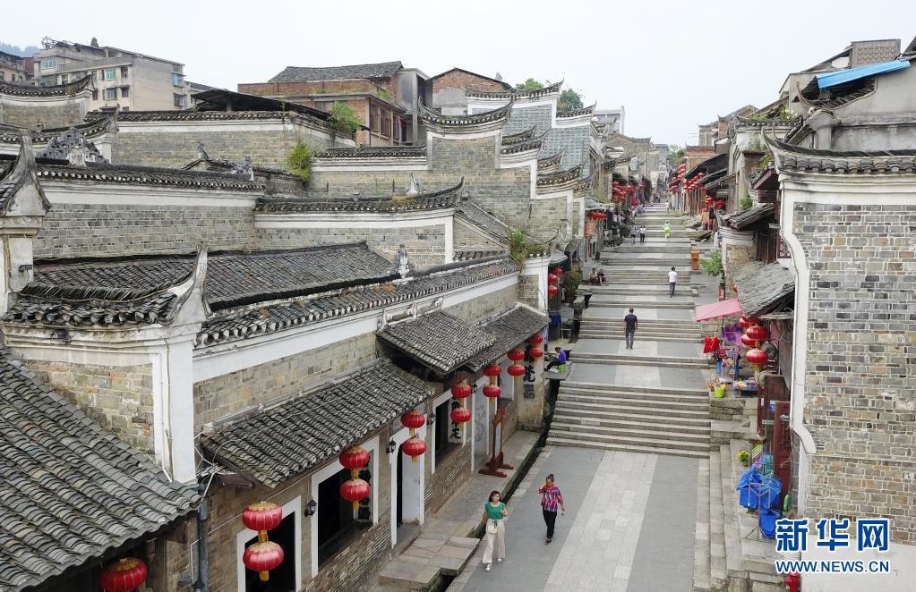 游客在贵州省黎平会议会址前参观(2019年7月2日摄,无人机照片)。新华社记者 杨文斌 摄