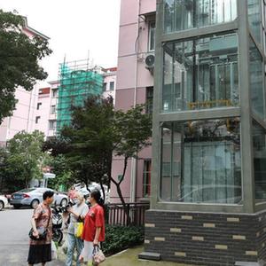 在上海市长宁区北新泾街道新泾六村,居民在加装了电梯的12号楼旁聊天(2020年6月23日摄)。新华社记者 方喆 摄