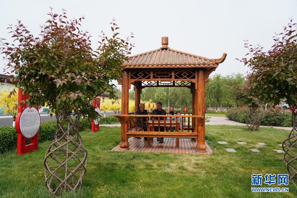5月13日,村民在河北省唐山市丰南区胥各庄镇岭子上村的游园内聊天。