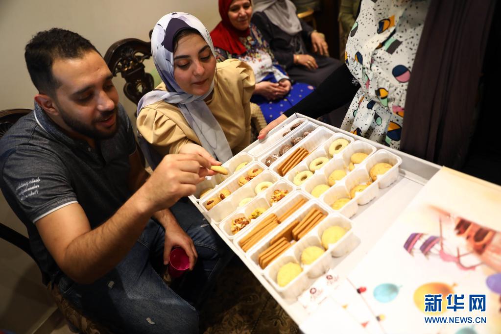 5月13日,人们在埃及开罗的家中品尝甜点,庆祝开斋节。