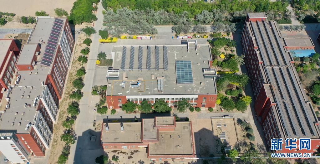 宁夏建设职业技术学院分布式污水雨水处理中水回用系统覆盖的区域(无人机照片,5月12日摄)。宁夏建设职业技术学院打造“节水型校园”,通过实施节水改造和强化节水管理,实施分布式污水雨水处理中水回用系统试点工程。