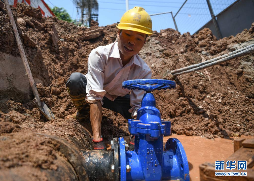 在广西钦州市,工人在对供水管网进行改造(5月11日摄)。