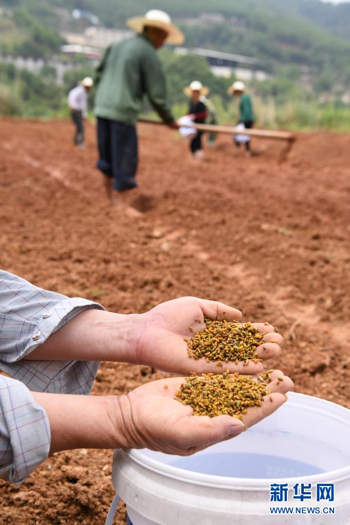 5月13日,福建省尤溪县梅仙镇坪寨村村民在生态种植示范基地播种豆科草本植物田菁,所产出的田菁豆将被用来加工植物竹炭腻子膏。