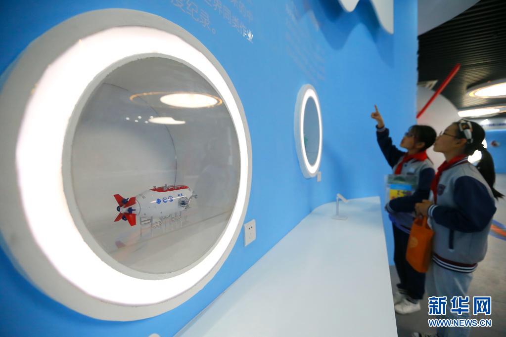 当日,山东省青岛长江学校小学部的学生们来到位于青岛蓝谷的海洋科技展馆内,通过参观海洋装备、体验科技游戏、听“蛟龙”号科考故事等形式学习海洋知识,培养对海洋科技的兴趣爱好。
