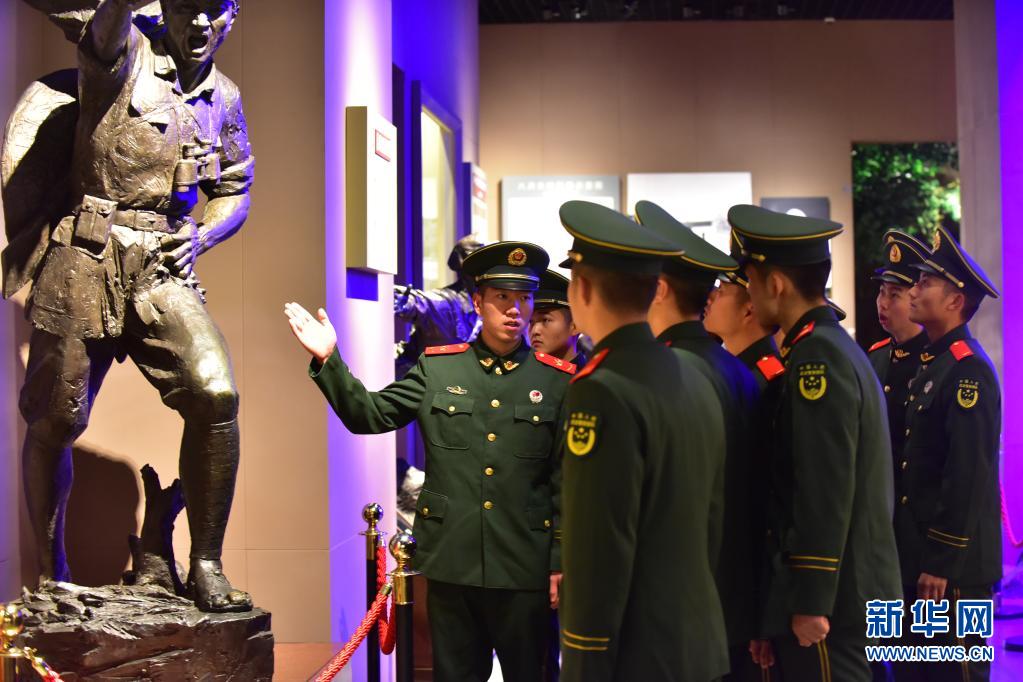 武警江西总队吉安支队井冈山中队红色义务宣讲员为刚下队的新兵讲述革命烈士英雄事迹(2020年12月31日摄)。