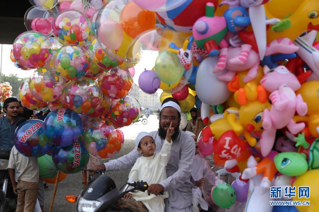 5月13日,人们在巴基斯坦南部城市卡拉奇庆祝开斋节。新华社发
