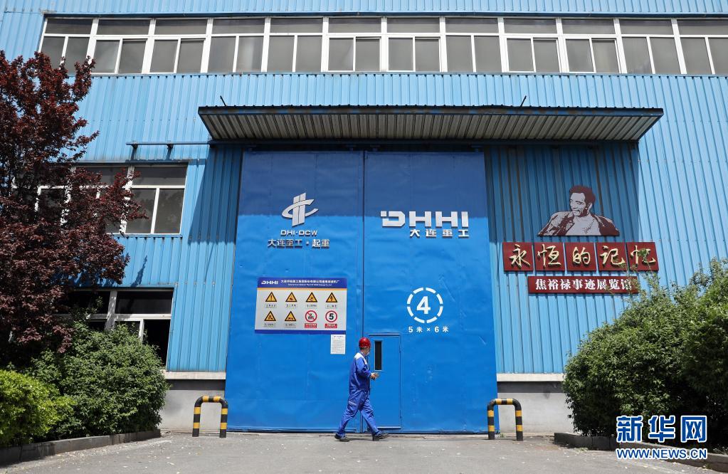 一名工人从大连重工·起重集团减速机厂厂房前经过,厂房内设有焦裕禄事迹展览馆(5月8日摄)。新华社记者 姚剑锋 摄