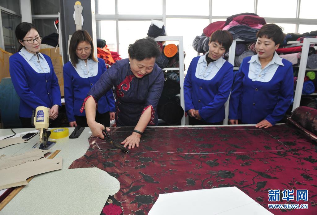 河北省河间市一旗袍创意工坊的负责人为工人讲解旗袍加工制作技能(2021年3月16日摄)。河间市积极拓宽农村留守妇女就业创业渠道,通过开展定向就业技能培训,对接用工单位搭建就业平台,采取短期用工、季节用工、临时用工等灵活方式,吸纳农村妇女在家门口就业增收,实现挣钱顾家两不误。新华社记者 朱旭东 摄