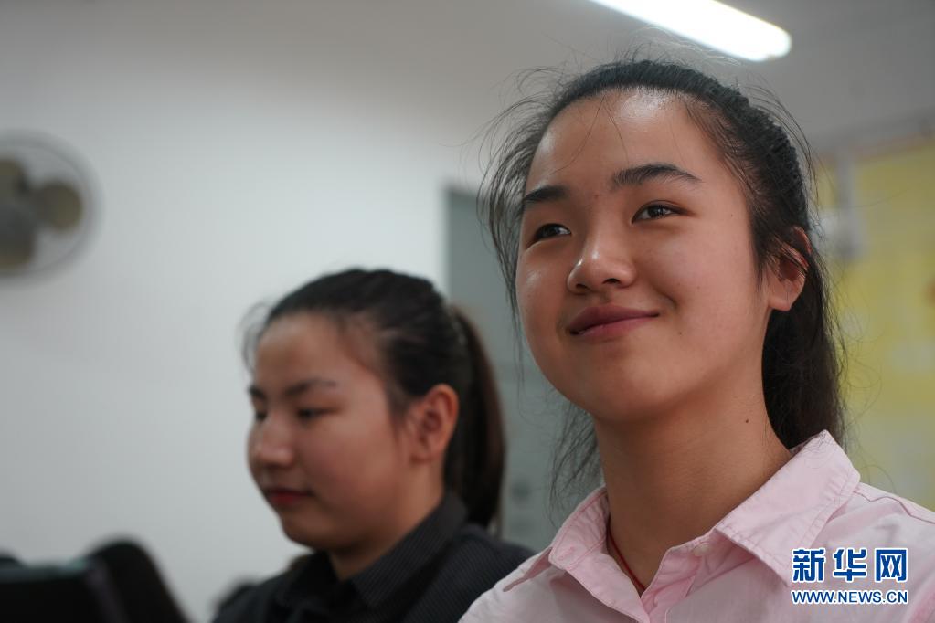 周文晴(右)在南京特殊教育师范学院上专业课(2019年5月17日摄)。新华社记者 季春鹏 摄