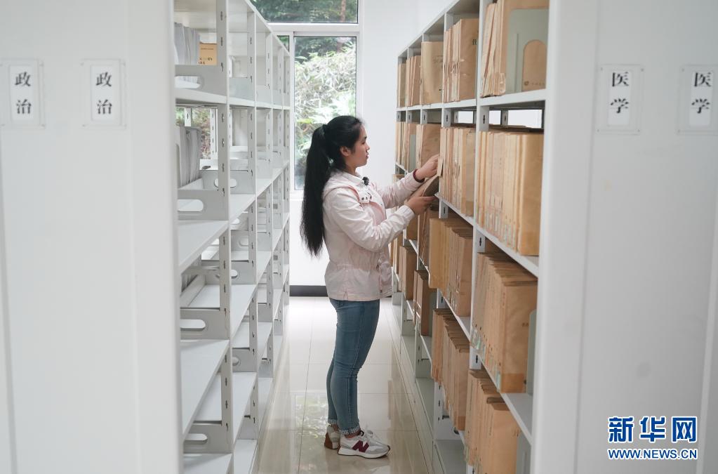 周文晴在南京特殊教育师范学院盲人图书室查阅资料(5月12日摄)。 新华社记者 季春鹏 摄