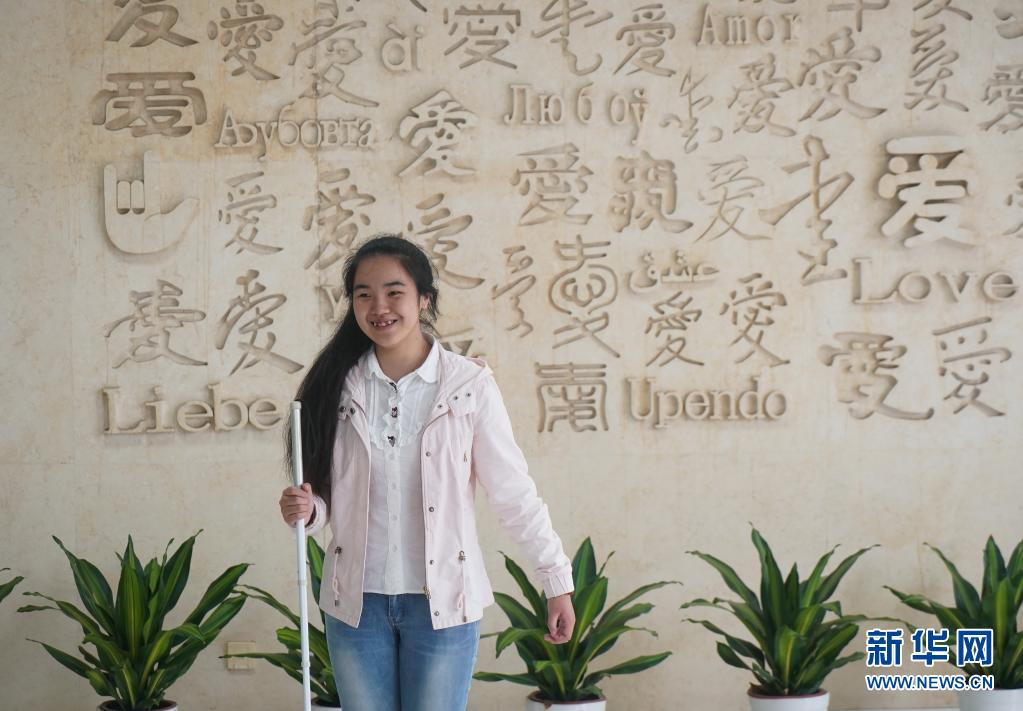 周文晴在南京特殊教育师范学院图书馆(5月12日摄)。新华社记者 季春鹏 摄