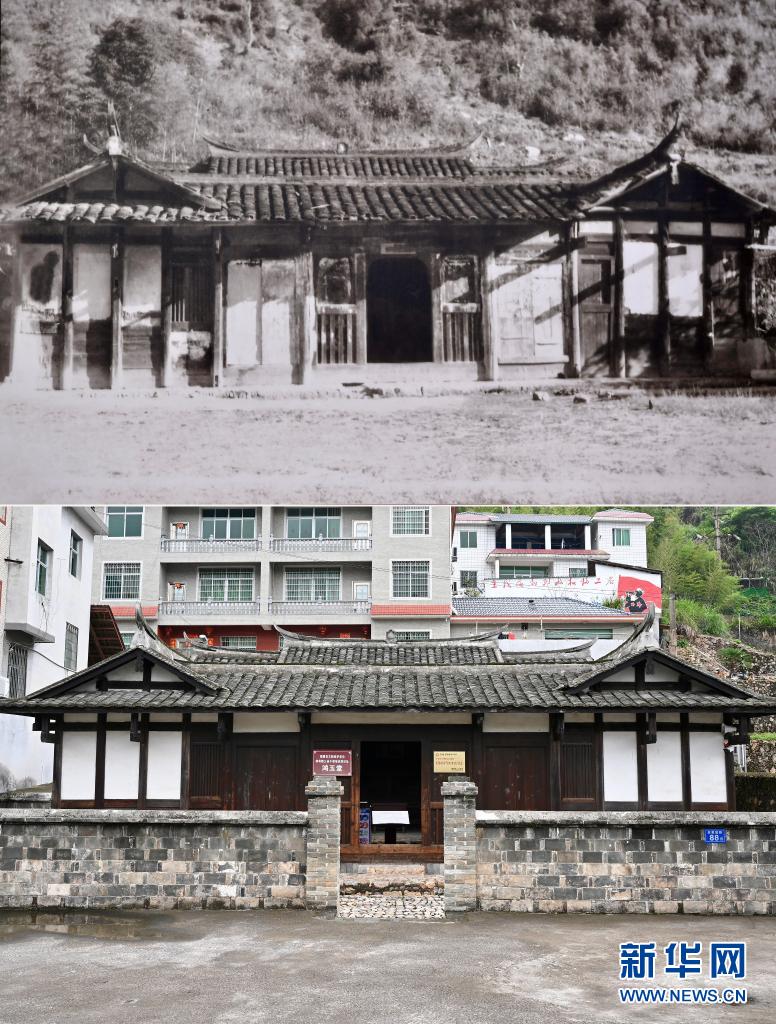 这是一张拼版照片:上图为位于古田镇苏家坡村的闽西特委机关干部培训班旧址鸿玉堂资料照片;下图为5月9日拍摄的鸿玉堂新貌(新华社记者姜克红摄)。新华社发