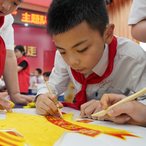 当日,共青团重庆市九龙坡区委联合四川美术学院,在当地火炬小学校开展了一场主题队会活动。来自四川美术学院的老师,以《收租院》群雕、《冬去春来》群雕等艺术作品为案例,向学生们介绍了当代艺术家如何用主题雕塑手段反映中国共产党领导人民开展社会主义建设的探索和发展成就,将艺术知识普及与党史宣讲有机结合,推动党史学习教育深入青少年的心中。