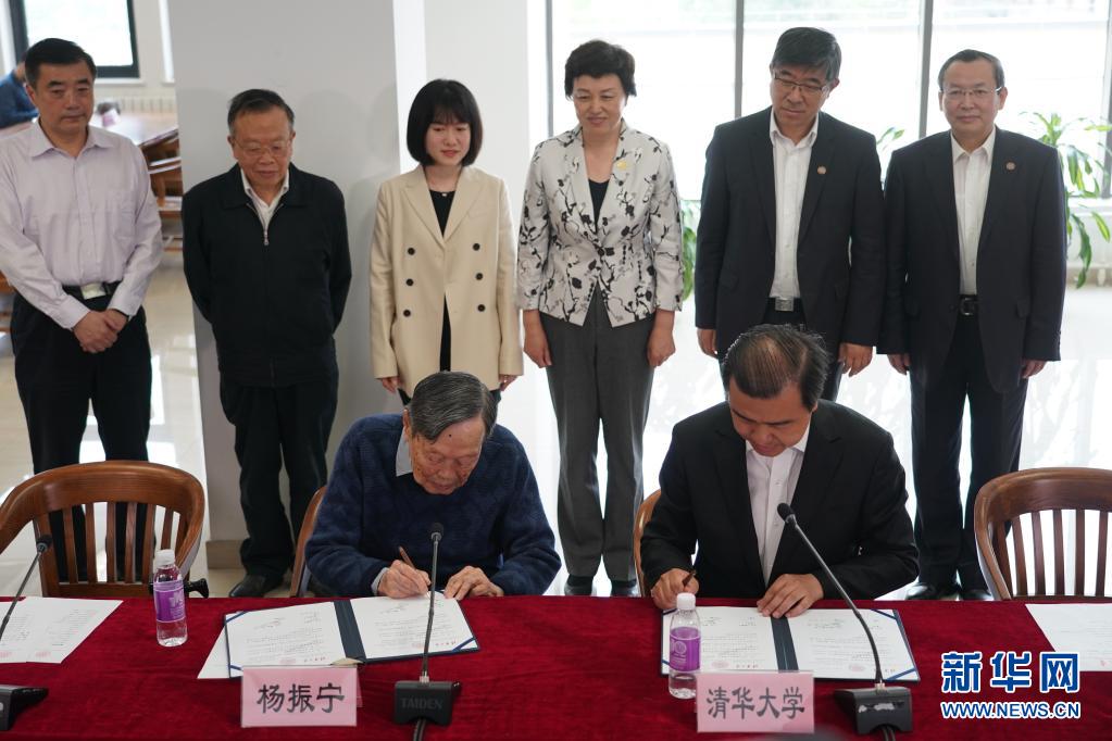 当日,杨振宁先生捐赠清华大学暨“杨振宁资料室”揭牌仪式在清华大学举行。为支持清华大学的教学科研、人才培养和文化传承,杨振宁将其珍藏的图书、文章手稿、来往书信、影像资料等无偿捐赠给清华大学。这批捐赠品共计2000余件(册),由清华大学图书馆接收并设立专室进行保管和展示。