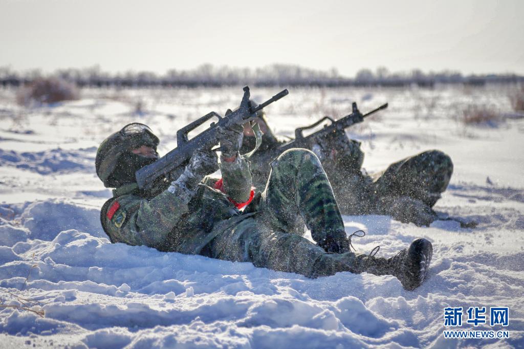 武警新疆总队某支队特战一中队官兵组织雪地战术训练(2018年1月4日摄)。新华社发(彭安田 摄)