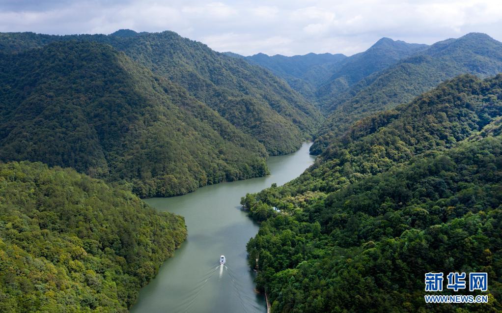 5月14日拍摄的三百山景区东风湖(无人机照片)。