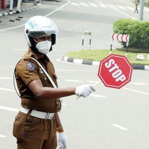 5月14日,警察在斯里兰卡科伦坡街头对出行车辆进行检查。