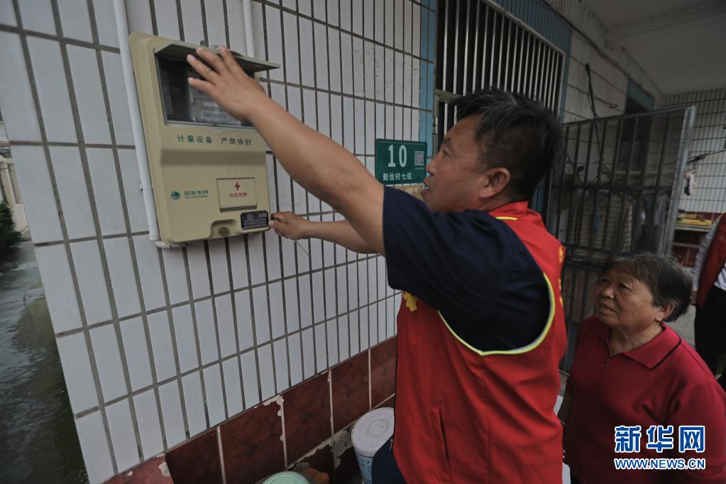 5月14日,茉莉物业保修人员李文英(左)为勤俭村村民王秀芳检查电路安全。