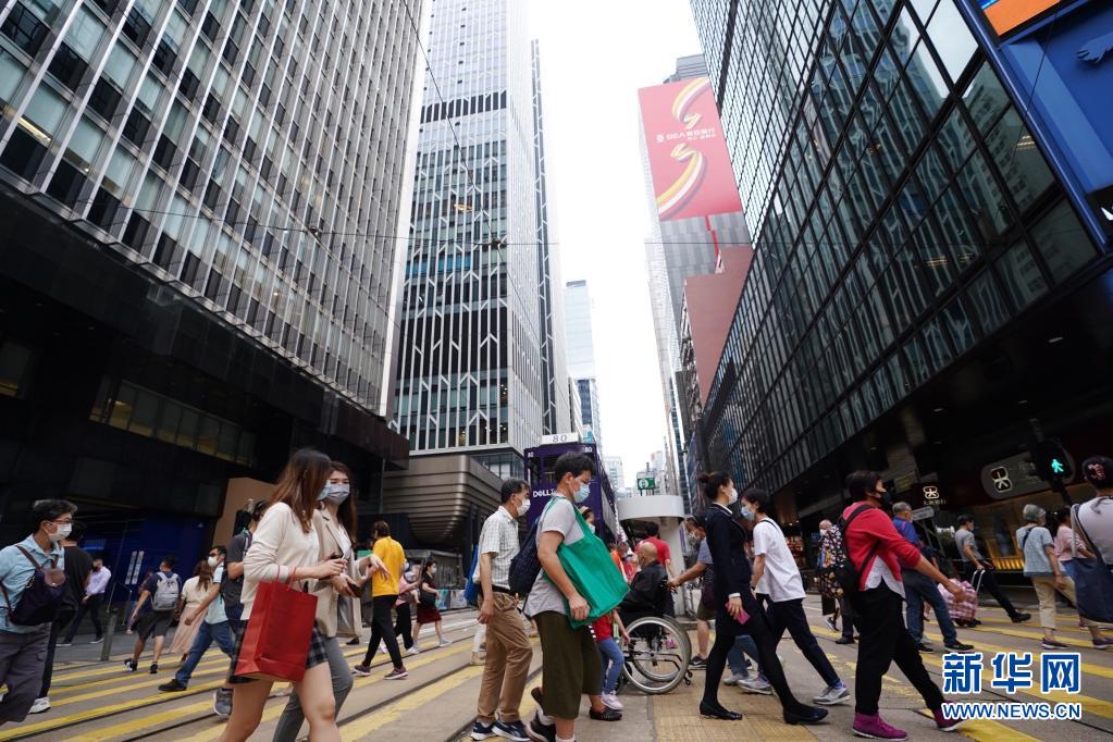 5月14日,市民在香港中环街头过马路。新华社记者 王申 摄