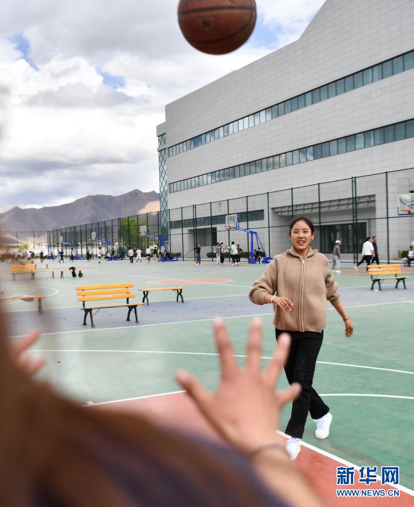 拉增在西藏大学操场打篮球(5月7日摄)。