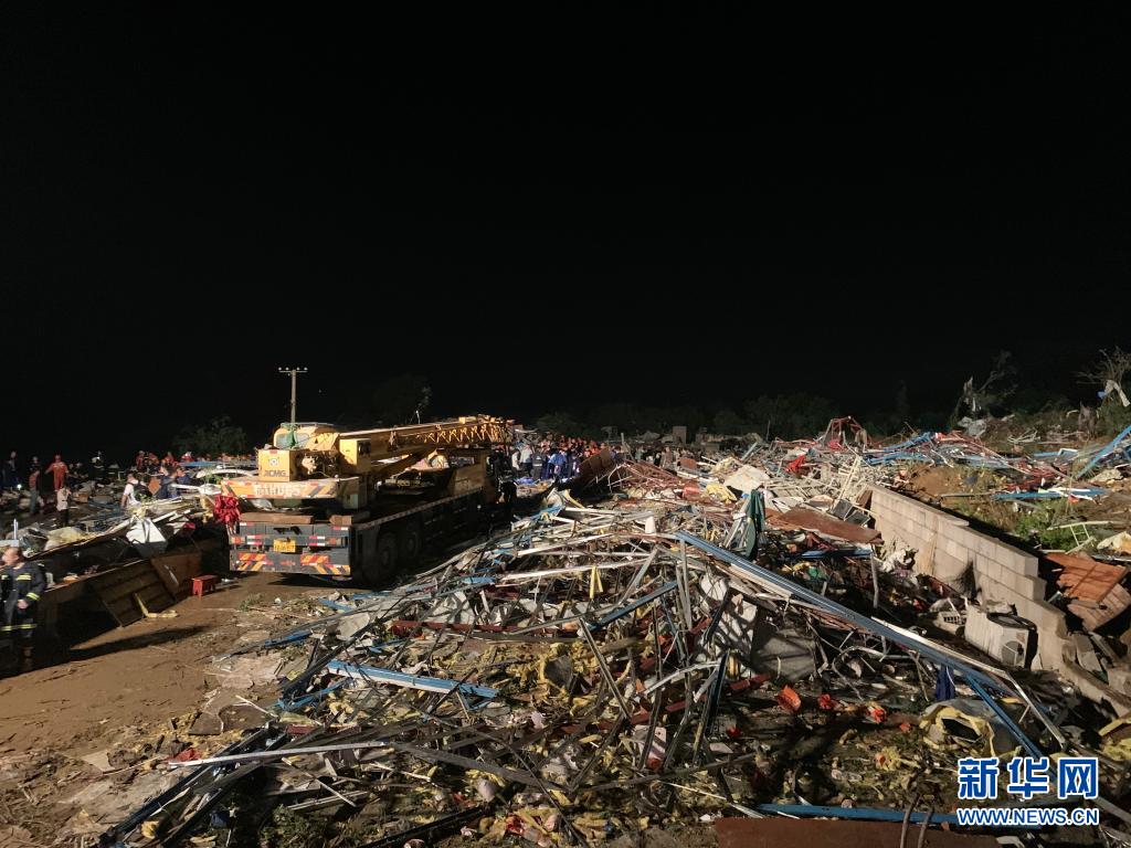 武汉市蔡甸区一处被龙卷风刮倒的厂房(5月15日,手机拍摄)。