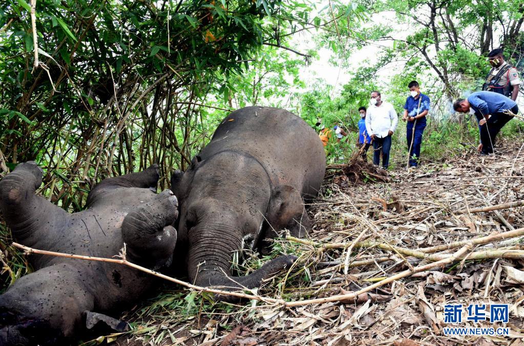 这是5月14日在印度阿萨姆邦纳加奥恩地区拍摄的死去的象。